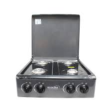 Cocina de mesa con respaldo de cuatro quemadores.