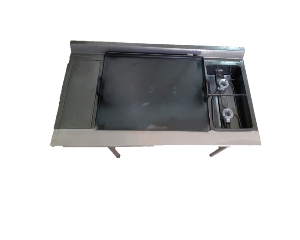 Cocina industrial de 2 quemadores y un quemador de plancha ideal para tu negocio.