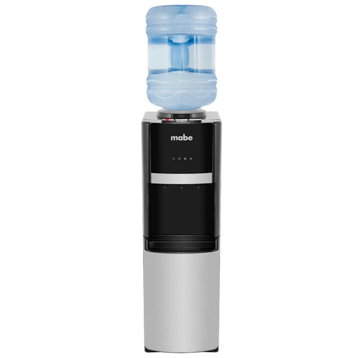 Perfecto dispensador de agua de color negro con acero inoxidable. Con gabinete para almacenamiento frío. Triple llave: agua caliente, templada y fría. Garrafón en la parte superior. Interruptor de enfriamiento y calentamiento.