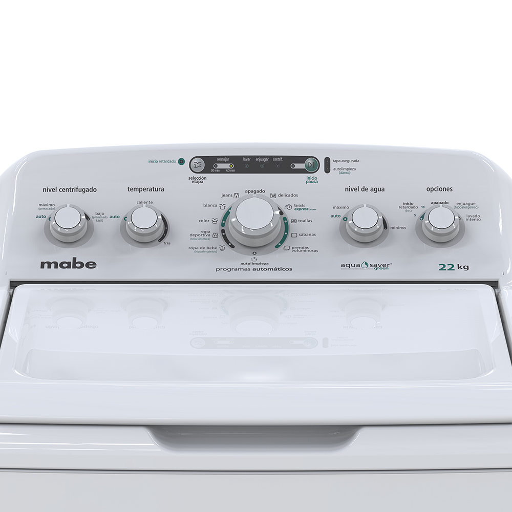 Lavadora con nuevo diseño en perillas para seleccionar de una manera sencilla los niveles y opciones de lavado, cuenta con gran capacidad lo que te brinda ahorrar tiempo lavando más en menos cargas, además dentro de sus ciclos de lavado se encuentra Lavado Express que permite tener ropa limpia en tan solo 20 minutos.